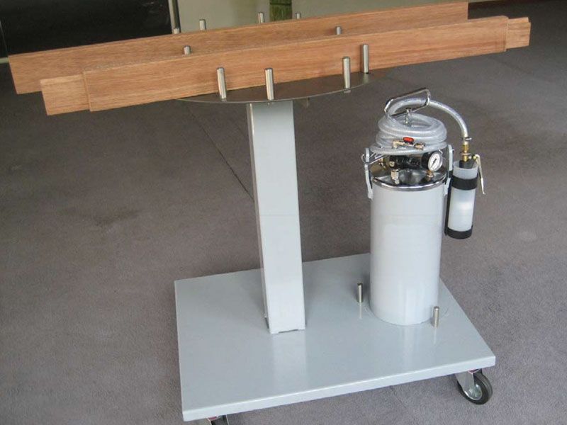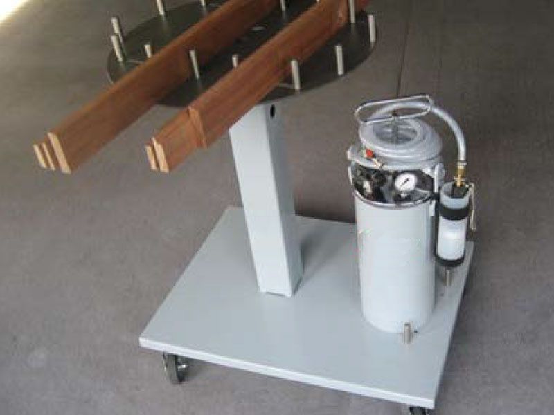 Das Beleimen von Werkstücken wie Schlitz-Zapfen- Eckverbindungen, Dübeln- und Dübellöcher sowie Flächen, ist von Hand aus offenen Töpfen aufwendig, wenig sauber und oft mit viel Leimverlust verbunden. Mit der cafos-Beleimstation bono werden diese Arbeiten schnell und materialsparend ausgeführt.