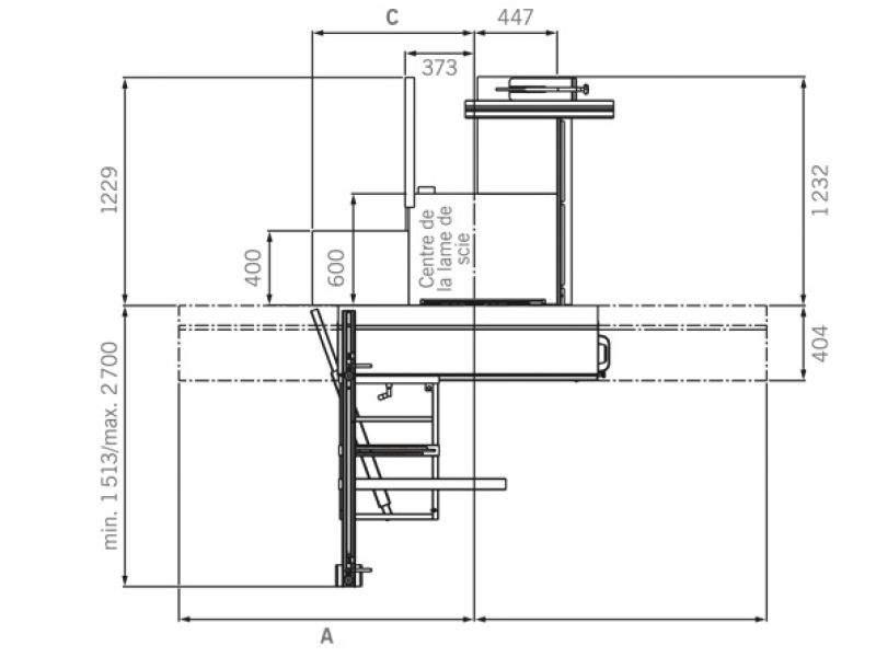 | C | 873 mm bei Doppelrollwagen 1600 mm und 2000 mm |