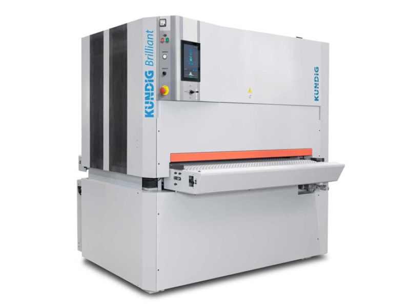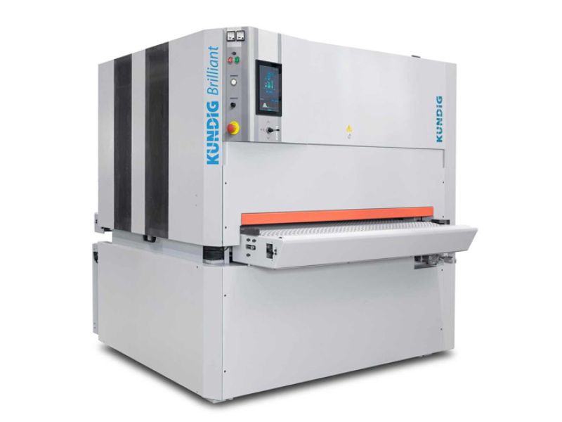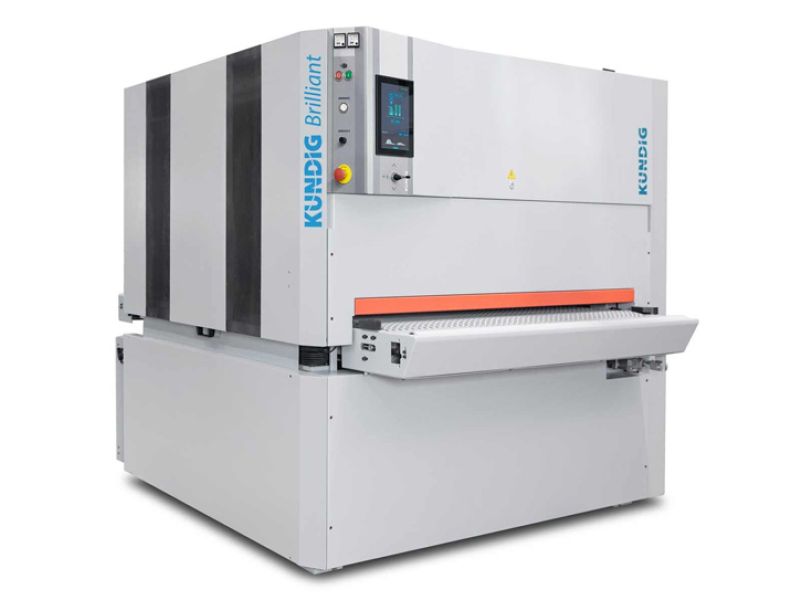 Der Aufbau einer Breitbandschleifmaschine der Serie Brilliant umfasst immer mindestens ein Aggregat, welches mit unserer patentierten Diagonalschleiftechnologie ausgestattet ist und wahlweise um 10° schräg oder herkömmlich gerade gestellt werden kann. Dieses spezielle Schleifverfahren hat Vorteile: Weniger Schleifspuren, längere Bandlebensdauer, weniger Faseraufrichtung und dadurch spürbar feinere Oberflächen. Das Diagonalschleifen hat sich daher in Bereichen mit besonders hohen Qualitätsanforderungen, wie Furnierarbeiten und Hochglanzlackierungen, bewährt. Die verringerten Schleifspuren werden aber auch in der Fensterproduktion oder bei feinen, naturbelassenen Massivholzarbeiten geschätzt.